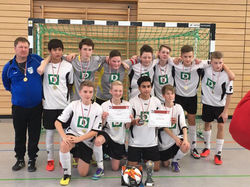 In der Gruppenphase zogen sie souverän mit 9 Punkten, als Tabellenführer, nach den Siegen gegen Bickenriede (6:1), Großengottern (2:0) und Uder (2:1), in die K.O. Runde ein. Im Halbfinale ging es dann nun schon gegen einen der Favoriten, Bad Tennstedt. Nach einem spannenden Spiel und einer tollen Teamleistung gewann man 4:2 und stand somit im Finale gegen Bad Langensalza, die bis dato auch ungeschlagen waren. Nachdem man nach 6 Minuten zum zweiten mal in Rückstand geriet, glich Vincent Wollner mit einem Gewaltschuss, 7 Sekunden vor dem Ende aus. Im Elfmeterschießen gewannen unsere Schützlinge mit 5:4 die Kreismeisterschaft und spielen nun um die Landesmeisterschaft mit. Mit Sadjad Hosaini stellte unsere Jugend auch den besten Torschützen, er schoss 7 der insgesamt 16 Tore des Teams.